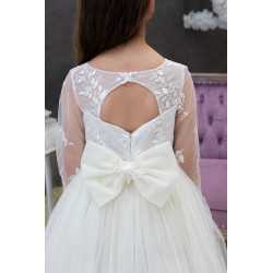 This gorgeous First Holy Communion Dress has a satin bodice with sweetheart neckline, there is a mesh panel around the neck and sleeves. The bodice, sleeves and skirt feature a beautiful lace detailing.