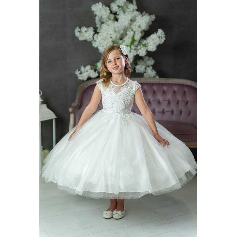 PAULA'S COMMUNION WHITE TEA-LENGTH FIRST HOLY COMMUNION DRESS STYLE UF23003